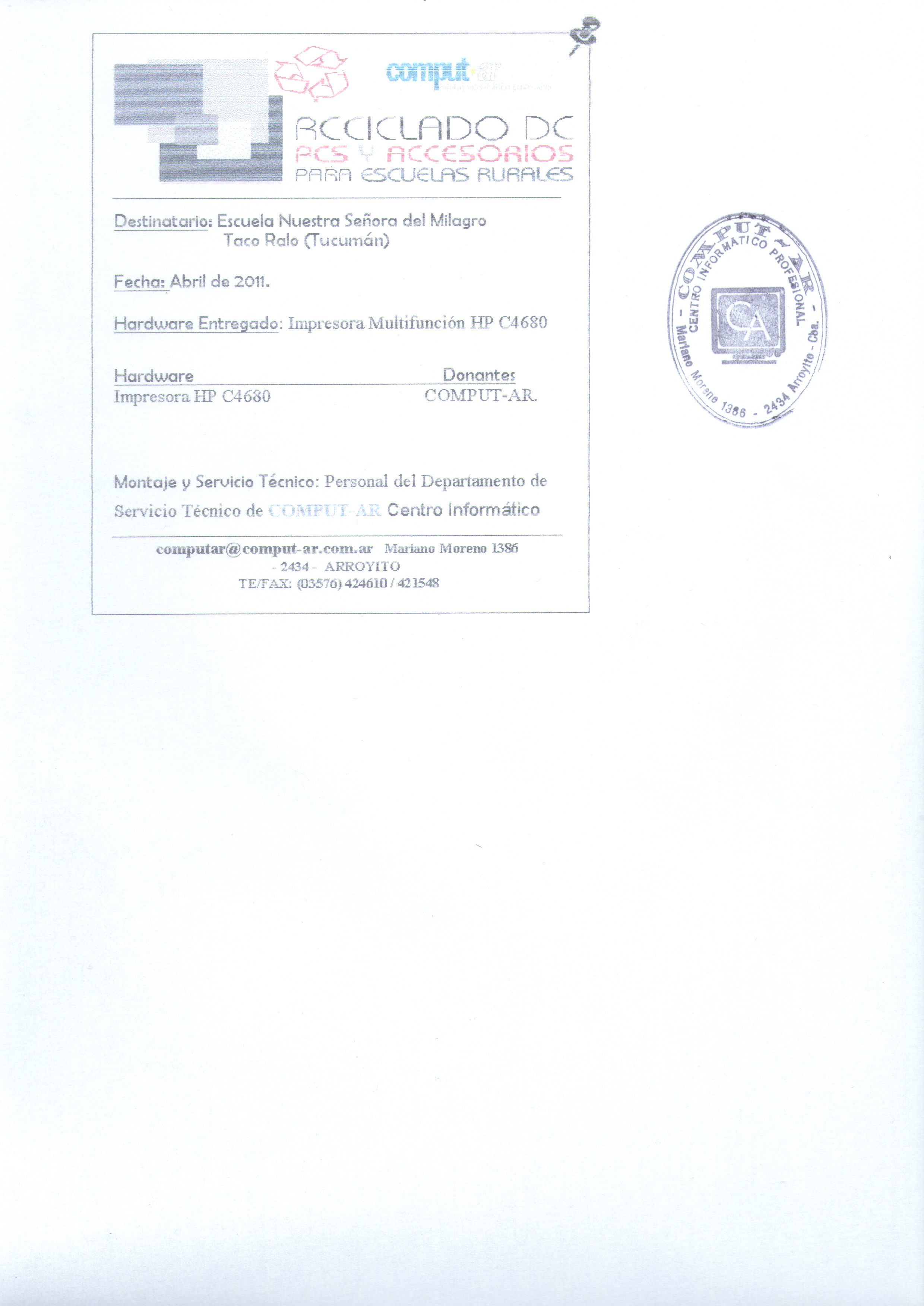 Mariano Moreno 13862434 | Arroyito (Córdoba)(03576) 454610 - 4246100computar@comput-ar.com.ar